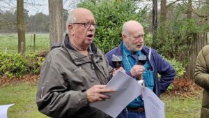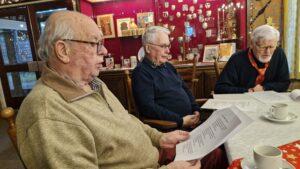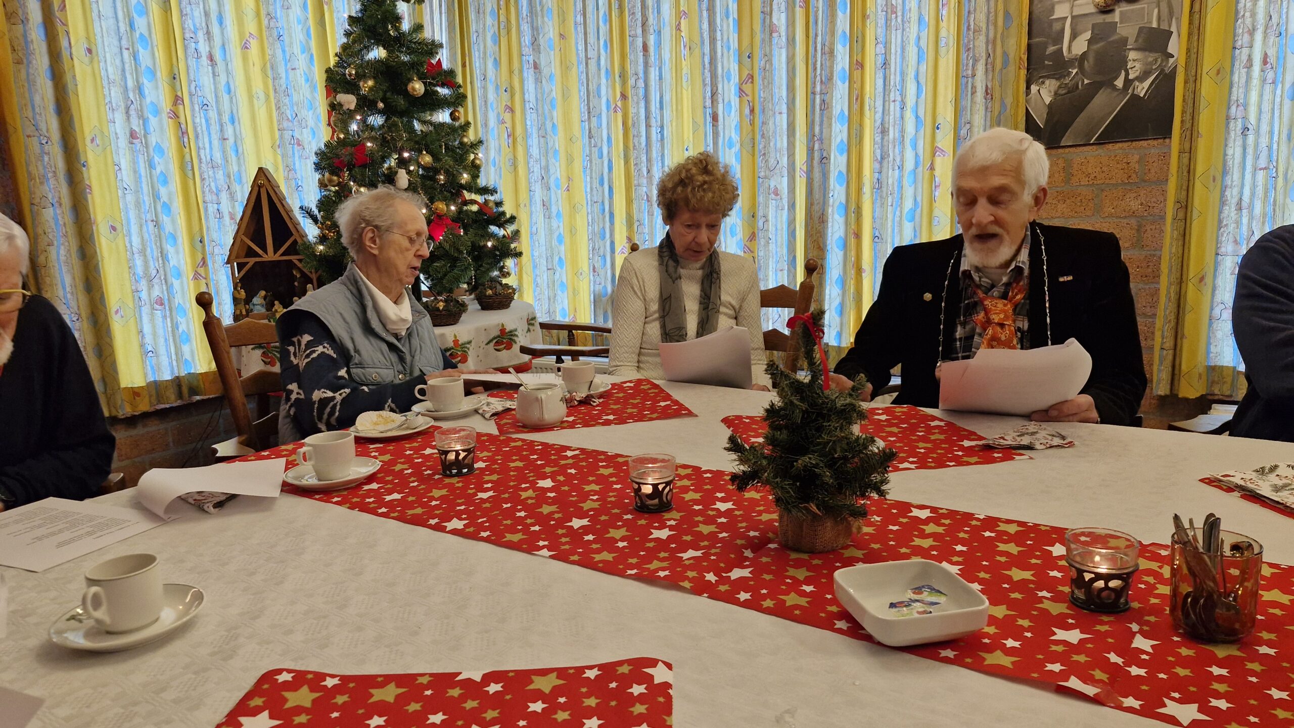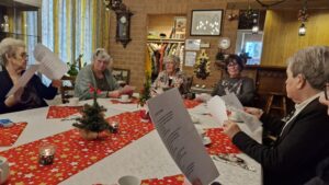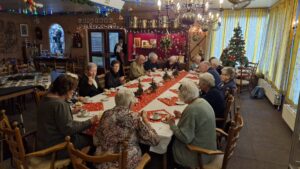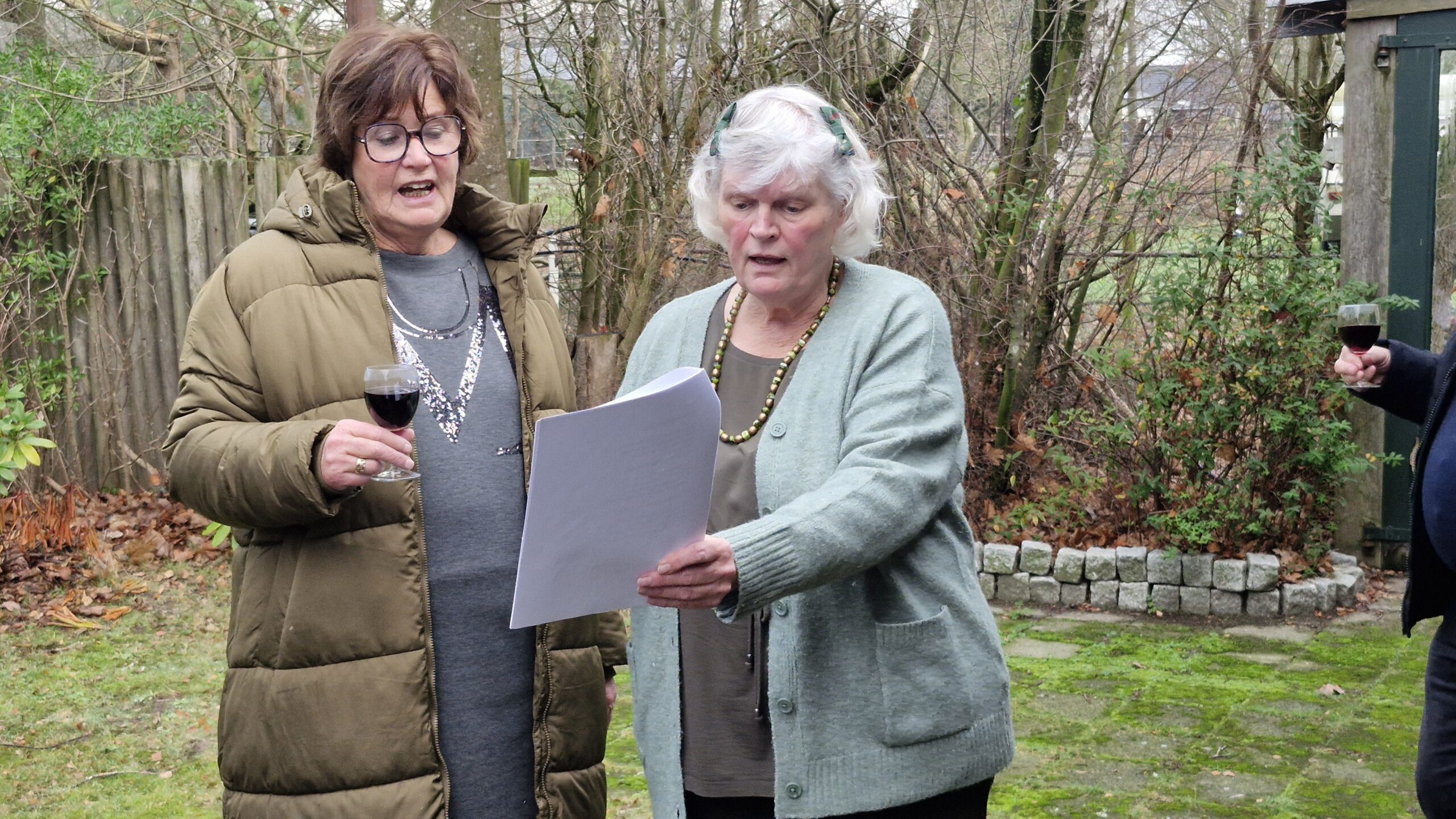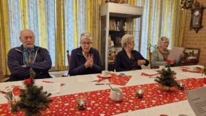 We startten met koffie en een heerlijk gebakje, verzorgd door Ton. Daarna las Annie een passend kerstverhaal voor en zongen we samen kerstliedjes uit de bundel. Met een glas glühwein gingen we vervolgens naar buiten, waar we bij het vuur gezamenlijk Stille Nacht zongen – een bijzonder moment.