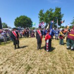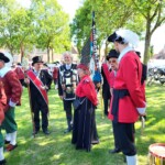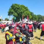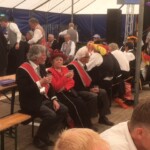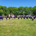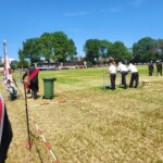 Opstellen voor de optocht ging soepeltjes. Met 3 gilden maakte kapitein Noud een mooie opstelling en het verliep heel netjes. Na afloop de massale opmars, altijd weer indrukwekkend. Het hele veld stond vol met vendelzwaaiers die een mooie groet brachten. Daarna de afmars en kon de dag beginnen.